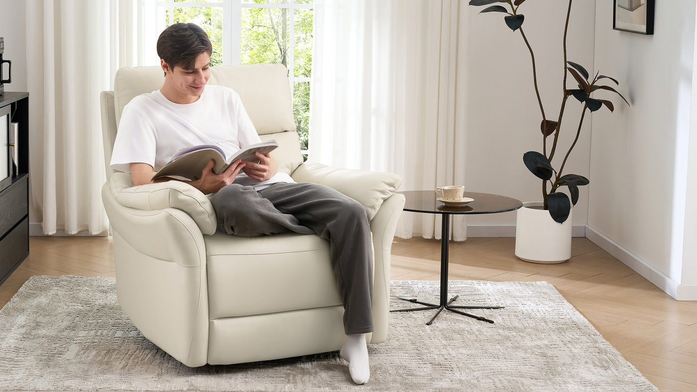Airsky offers genuine leather and PU leather recliners. If cared for properly, this natural material will maintain its beauty and usefulness for many years. Direct exposure to strong light can cause any leather to fade, so always protect leather from direct sunlight or other intense light sources.