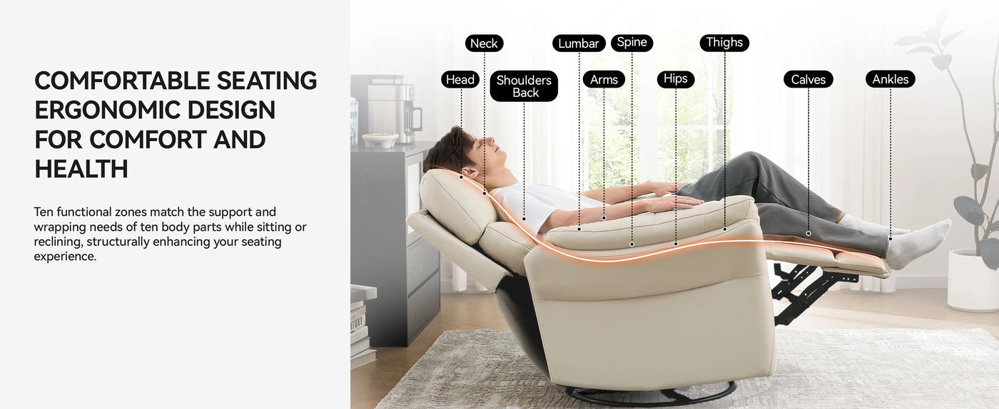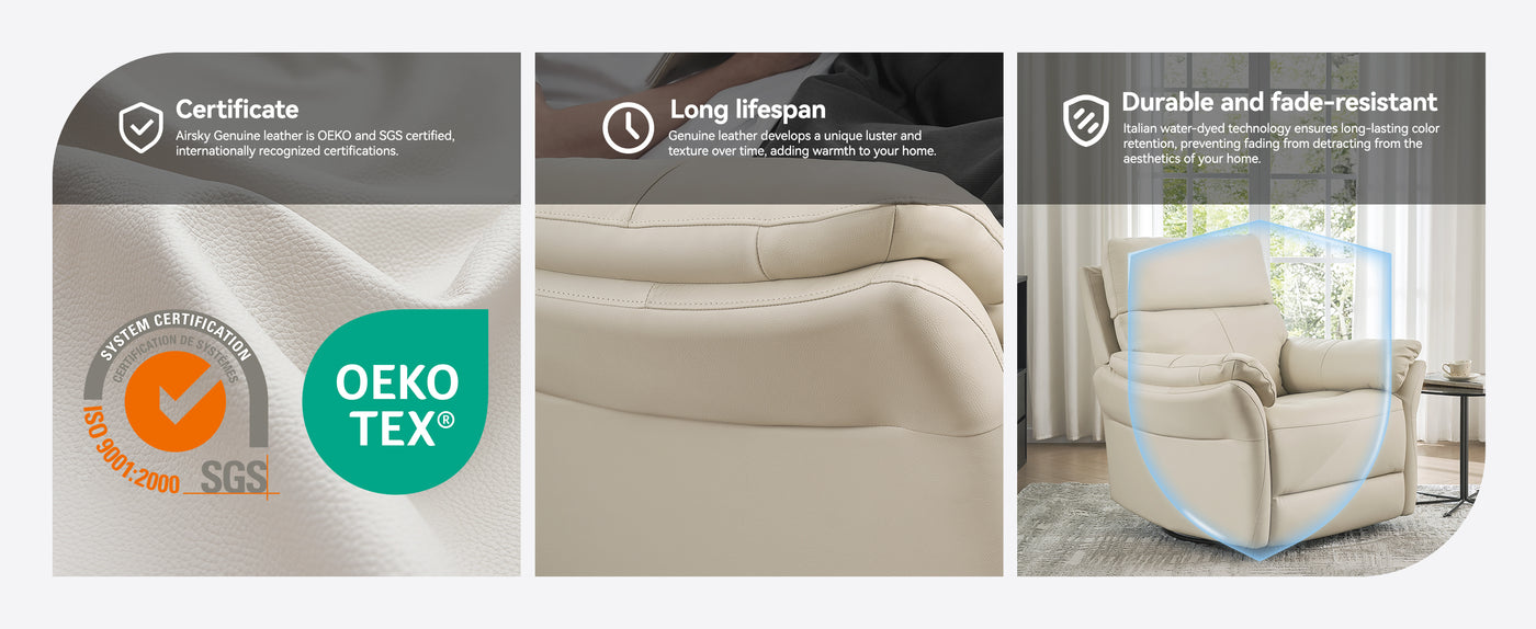 Airsky Recliner Chair Top-Grain Leather Genuine Leather Ergonomic Armchair Sofa for Adults R1
