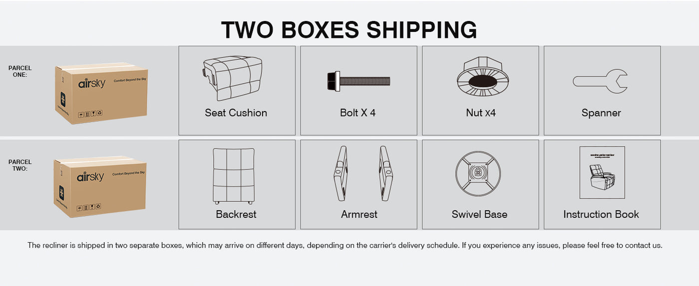 If you have any questions about returns, refunds, or exchanges, please feel free to contact our customer service team: thewestoryoffice@zuoyou-sofa.com / airskyoffice@gmail.com. We’re here to help and ensure your experience with Airsky is smooth and worry-free.