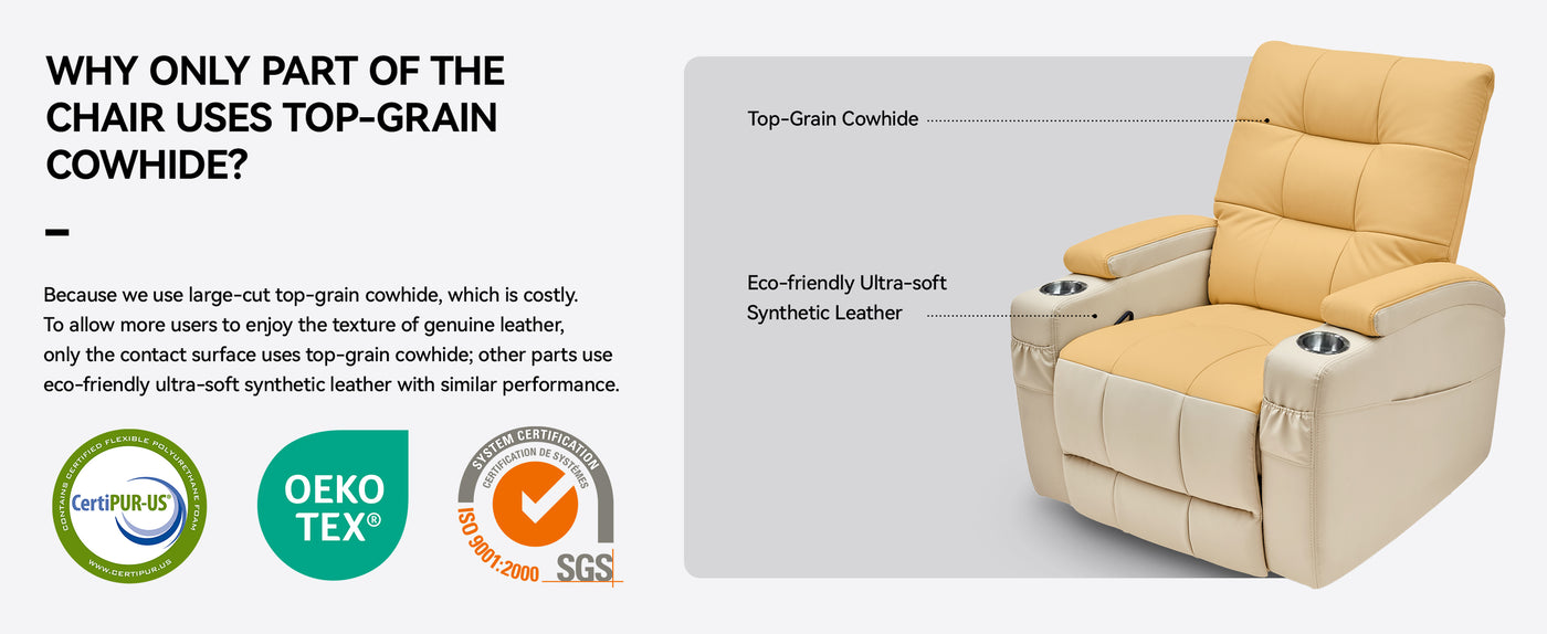 · Genuine leather touch points: top-grade high-quality yellow cowhide, easy to clean, durable and new