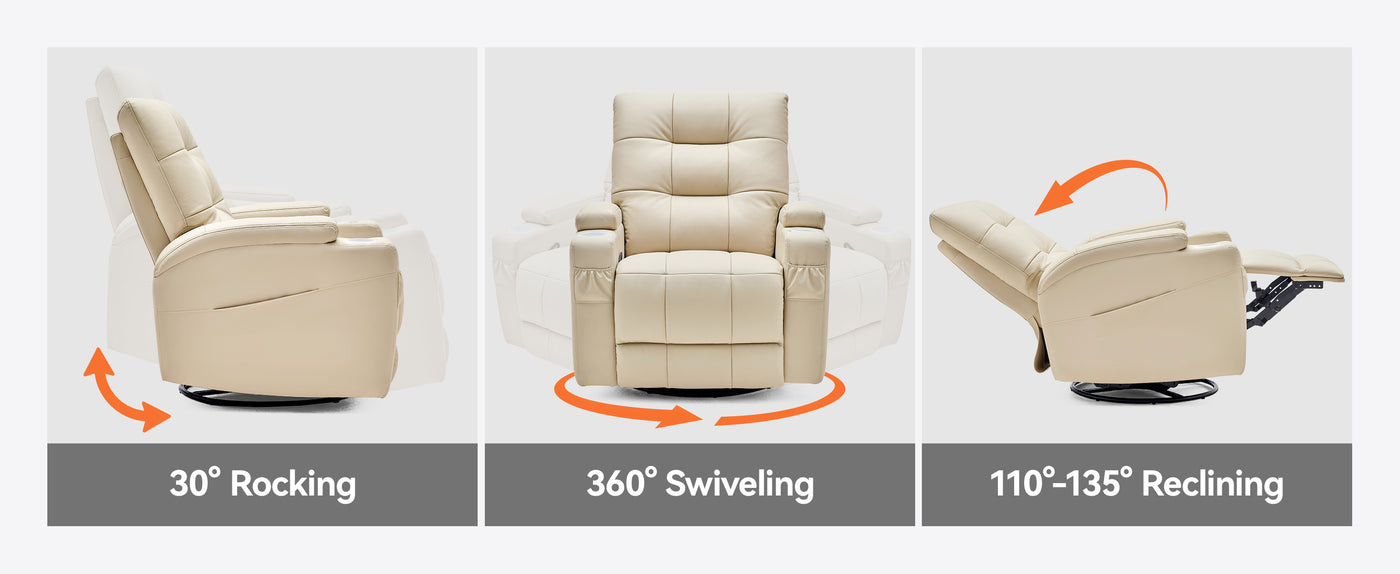 · 360° swivel & gentle rocking: relieve pressure, 30° rocking front and back, 360° rotation left and right, 110°-135° front and back adjustment, convenient for coaxing babies to sleep
